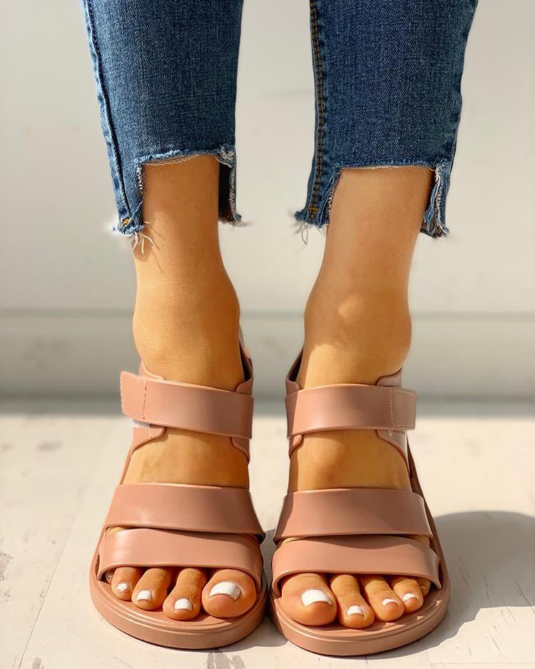 Multi-strap Open Toe Non-Slip Flat Sandals, Pink