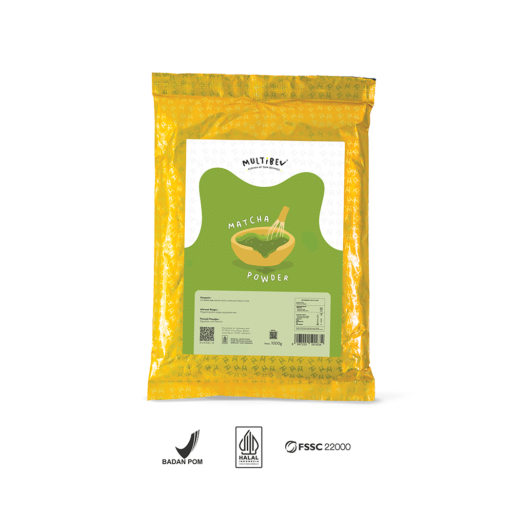 Multibev Bubuk Rasa Matcha. Bubuk kami sudah bersertifikat halal dan diproduksi di Indonesia. Cita rasa akan mengikuti lidah khas orang Indonesia yang rasa enak sekaligus manis.