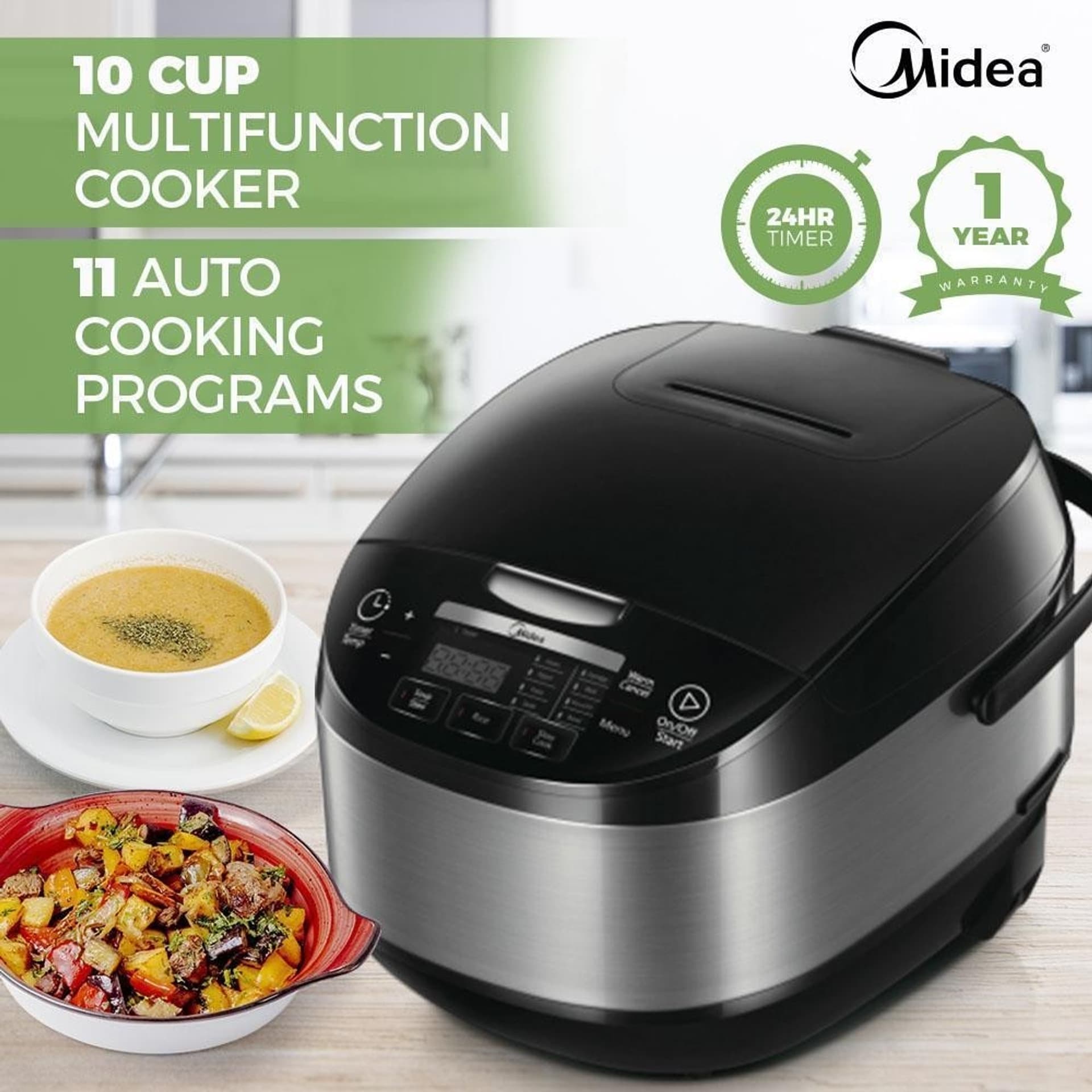 Multicooker Midea FS5077WielofunkcyjnośćW muticookerze ugotujesz wiele róznych dań. Specjalne programy umożliwiają przygotowanie m.in. ryżu, kasz, ciast, jogurtów, owsianek czy makaronu.Czytelny wyświetlacz cyfrowy LED Panel sterowania z przyciskami dotykowymi Pojemnik wewnętrzny T 2.0mm z powłoką nieprzywierającą Gotowanie wielofunkcyjne 10 automatycznych menu gotowania 24-godzinny zaprogramowany timer Automatyczna funkcja utrzymywania ciepła Funkcja trzymania ciepłaMożesz przygotować dania z wyprzedzeniem. Dzięki funkcji trzymania ciepła nie wystygną przez długi czas po zrobieniu.Wygodne akcesoriaAkcesoria dołączone do multicookera sprawią, że przygotowywanie dań będzie jeszcze prostsze i wygodniejsze. W zestawie otrzymujesz pojemnik do odmierzania składników, łyżkę oraz nakładkę do gotowania na parze.
