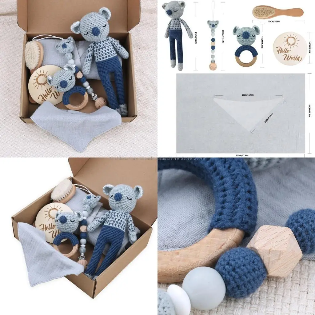 Multifunction Baby Toy Set with Pacifier-chain Ring-Teether Hello-World Plate Baby Blanket Hair Brush Rattle Teether