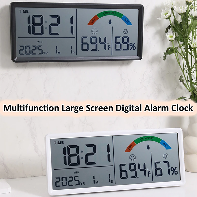 Multifunctional Alarm Clock LCD Large Screen Digital Temperature Hygrometer Simple Date Week Display Wall Clock Desk Clocks
