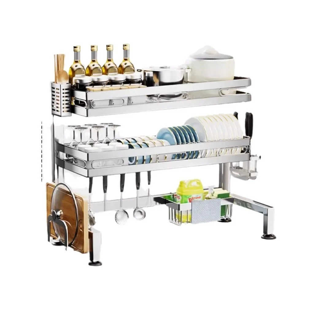 Multifunctional Stainless Steel Kitchen Sink Storage Rack Dish Rack Countertop Dish Storage Drain Basin