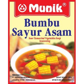 Sayur asem atau sayur asam adalah hidangan populer Indonesia. Bahan yang umum adalah kacang tanah, nangka muda, melinjo, labu siam, dan kacang panjang. Semua dimasak dalam berbasis asam sup dan kadang-kadang enrichen dengan rasa daging sapi. Resep juga termasuk jagung. Rasa manis dan asam hidangan ini dianggap menyegarkan dan sangat kompatibel dengan goreng atau panggang hidangan, termasuk ikan dan lalapan, semacam salad sayuran mentah biasanya tetapi juga dapat dimasak, dan biasanya dimakan dengan sambal terasi. BAHAN: Gula, Bawang Merah, Kemiri, Chili, Tamarind, Greater lengkuas, garam, MSG, Natrium benzoate.