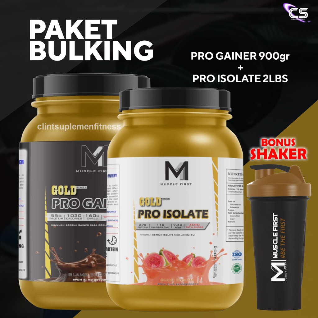Syarat dan ketentuan bonus:1. Klik +follow di halaman utama Clint Suplemen Fitness2. Tulis di keterangan saat checkout bonus yang anda pilih: Tas Sepatu / Gym Strap/ Singlet / Shaker / TopiKami akan memberikan bonus bagi pelanggan yang mengikuti S&K yang berlakuPaket Bulking Beginner 2GAINER**Varian rasa Gainer/no POM:- Caramel Fusion 267009085575 - Glame Chocolate 267009065575- Honeydew Melon 267009059575ISOLATE**available flavour Whey:Indian MangoGuava RoschaHoney BananaChocolateTaroKENAPA MUSCLE FIRST?solusi yang paling tepat karena m1 isolate akan memberikan kamu asupan protein yang cukup untuk membentuk otot dan creatine yang mampu mengisi otot2 yang telah kamu latih.PENGIRIMAN SENIN - SABTUGojek/Grab dikirim hari yg sama- Instant max. order 15.30 sore- Sameday max. order 14.00 siangJNE/JNT/SICEPATmax. order jam 14.00*Lewat dari jam diatas, dikirim esok hari*Khusus sabtu close order 13.00 siang**MINGGU & TANGGAL MERAH OFF**