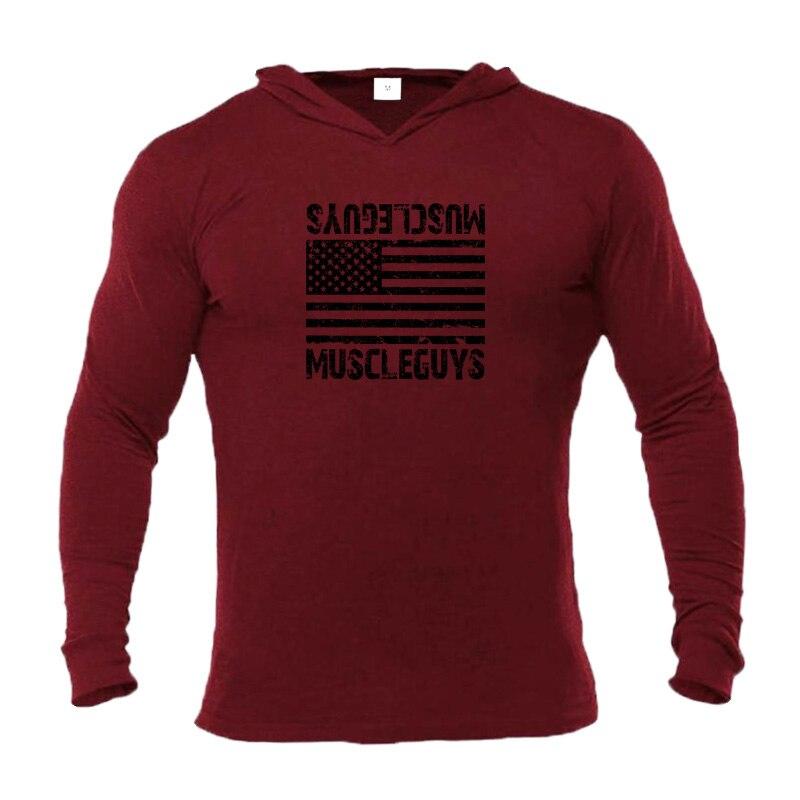 Muscleguys Slim Fit Футболка с длинными рукавами Мужская белая верхняя хлопчатобумажная внутренняя одежда Нижняя рубашка Весна и осень Одежда XXL бордовый