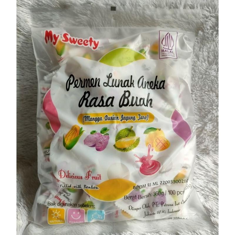 My Sweety, permen jelly rasa buah yang enak, manis dan segar rasanya. Ada mangga, durian, jagung dan taro.