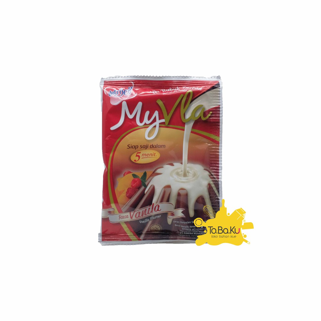 MyVla adalah vla bubuk instan tanpa dimasak cukup diseduh dengan 200 ml air panas dispenser minimal 70C, siap saji dalam 5 menit sebagai pelengkap puding. Praktis dan nikmat.