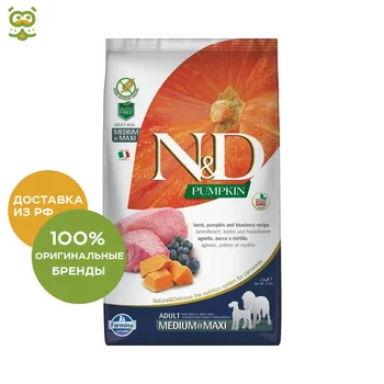 N&D Dog GF Pumpkin Adult Medium & Maxi корм для взрослых собак средних и крупных пород, Ягненок и черника, 2,5 кг.