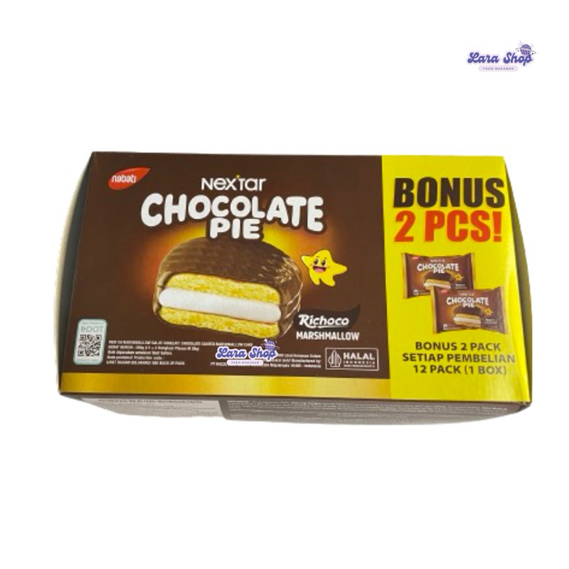 Nabati Chocolate Pie soft cake berlapis coklat dengan isian marshmallow, 1 box isi 12 pax+ 2 pax.