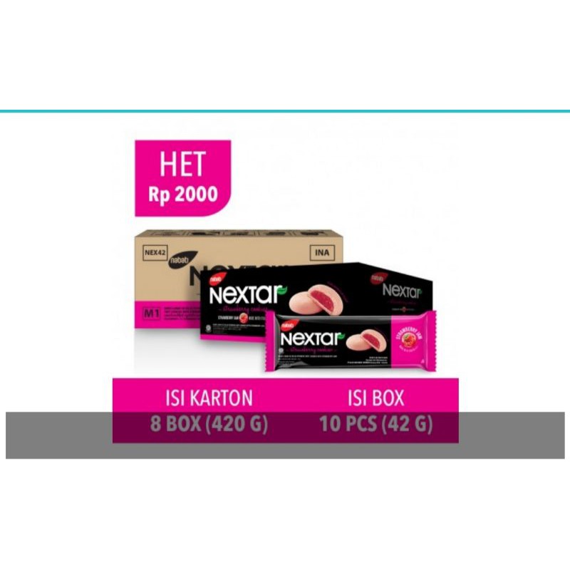 Produksi PT. Kaldu Nabati Sari - Bandung, perusahaan multi konsumen produk yg merajai pasar lokal khususnya jawa barat hingga terkenal se nusantara. Nabati sebenarnya sudah sangat merambah lini jualan yg beragam. Mulai dari snack yg utama hingga konsorsium pemilik brand snack sarat penghargaan bergensi nasional hingga jaringan resto. Dan salah satu produk yg mereka punya adalah Nextar. Brand makanan ringan berupa kue nastar lembut dgn berbagai rasa selai didalamnya. Kemasan kotak isi 3 pcs kue/bks x 10 bks dgn netto 42gr/bks. Ber BPOM dan Halal MUI