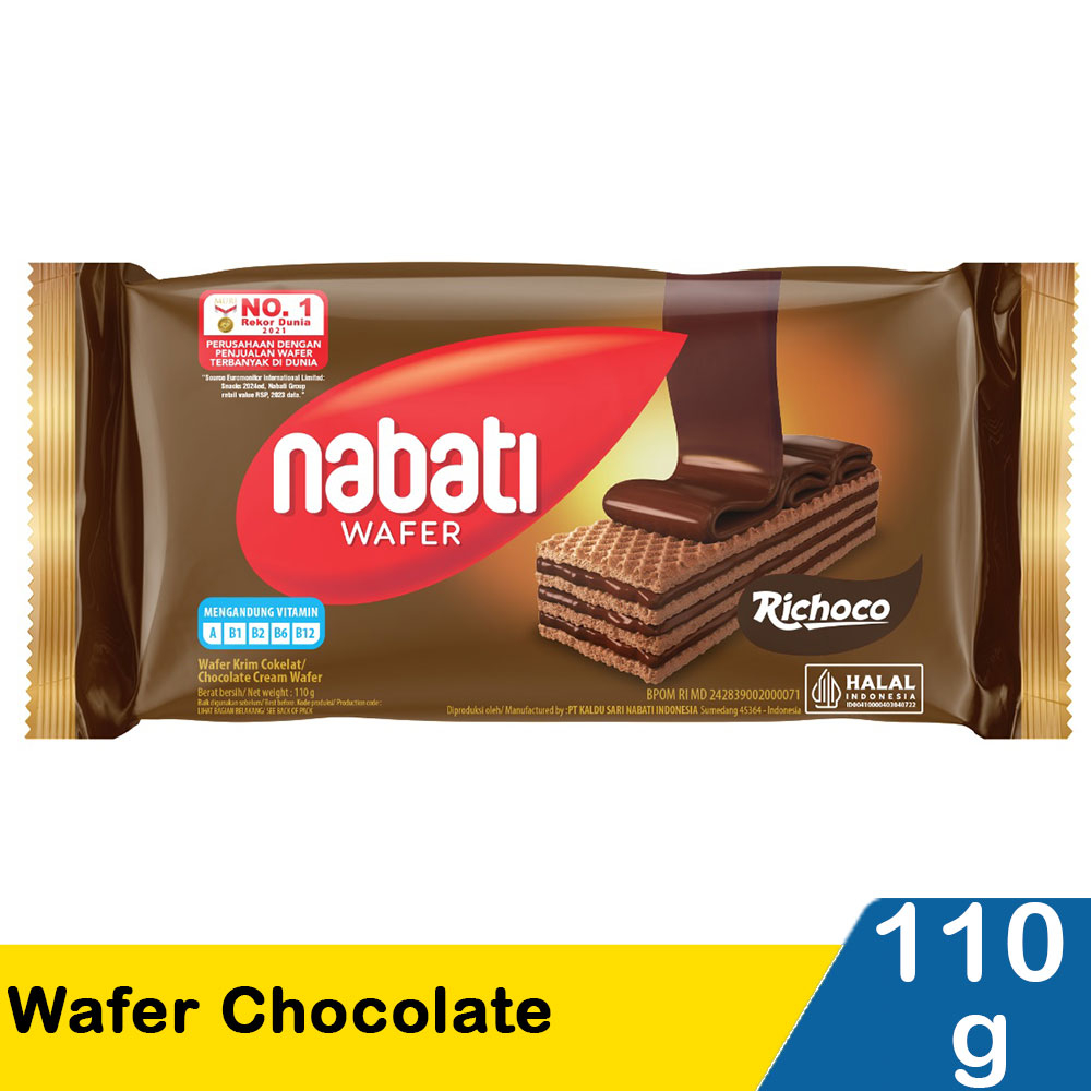 Nabati Richoco Wafer Chocolate adalah snack wafer dengan rasa cokelat yang renyah dan lezat, dengan krim cokelat yang creamy dan manis. Wafer ini mengandung vitamin A, B1, B2, B6, dan B12, serta cocok untuk dinikmati sebagai camilan kapan saja.