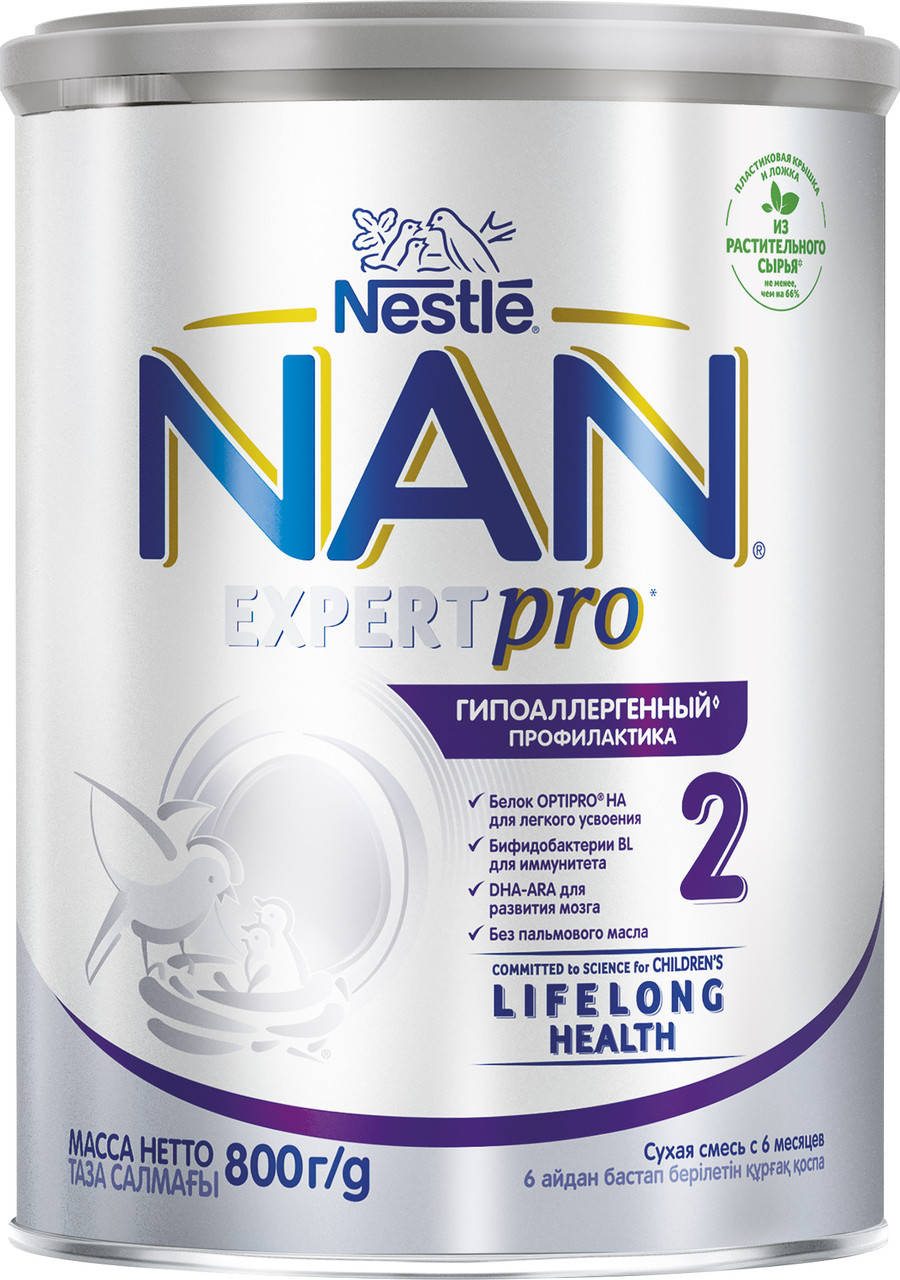 NAN® Гипоалергенный 2 OPTIPRO® HA гипоаллергенная смесь, предназначена для вскармливания здоровых детей с 6 месяцев в качестве молочной составляющей рациона ребенка, в дополнение к другим продуктам прикорма, когда грудное вскармливание невозможно.
