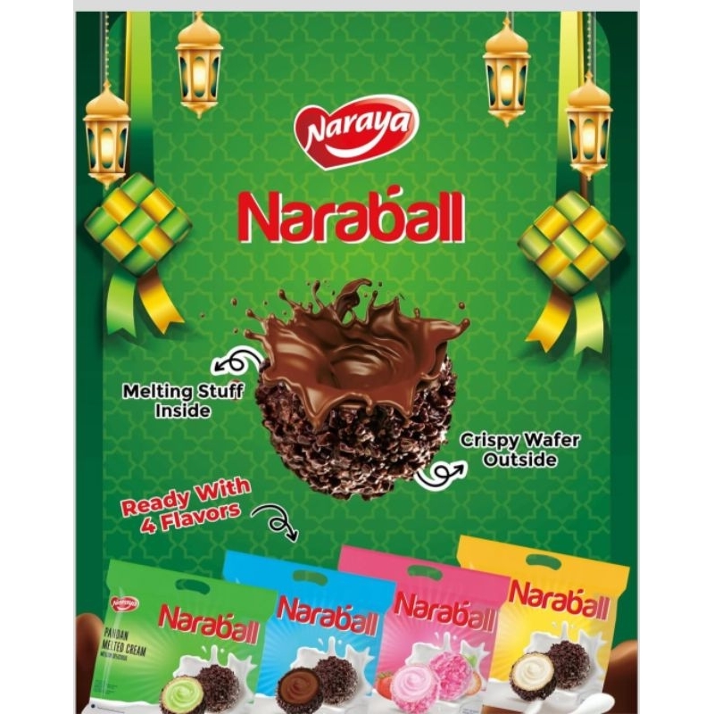 Naraya Naraball Wafer Ball Strawberry Melted Cream / Wafer Salut Krim Rasa Stroberi, cokelat dan vanilla.
