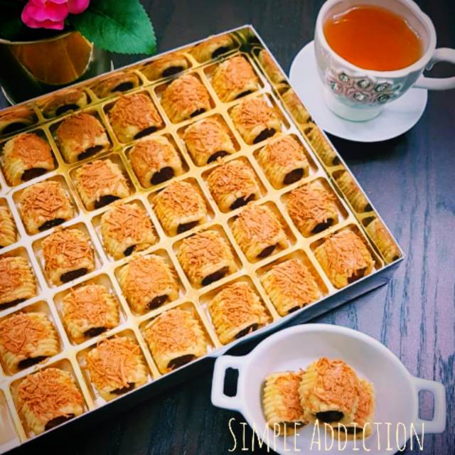 Nastar Keju Simple Addiction terbuat dr bahan2 import berkualitas dg taburan keju di atasnya membuat nastar keju kami garing dan renyah serta isi selai nastar yg banyak.