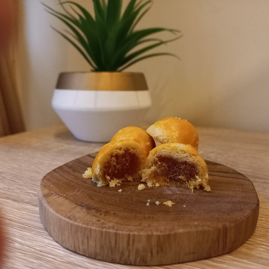 Nastar premiun dibuat dengan butter Wijsman, menghasilkan aroma mewah sekaligus vintage, tekstur lumer dimulut, dan rasa legit dari selai nanas beroma cengkih dan kayumanis. Kombinasi aroma dan rasanya akan membawa anda bernostalgia dengan nastar homemade yang dibuat dengan cinta oleh ibu.