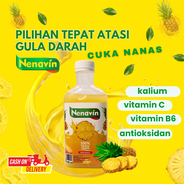 Manfaat Utama Cuka Nanas NENAVIN adalah untuk mengatasi Diabetes dan mengontrol Gula Darah.