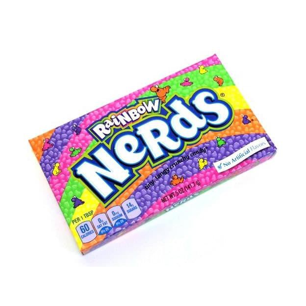 Nerds Rainbow adalah Permen mini berukuran kecil dan imut yang dilapisi dengan rasa Strawberry. Dari segi tekstur, permen ini garing, keras tapi tidak terlalu keras, masih bisa untuk dikunyah. Dalam box Nerds ini mempunyai banyak varian warna. kalau kamu mau makan semua rasa maka rasanya pasti lebih seru dan sensasi asam, asin dan manis yang pasti kamu makin suka dan pengen coba terus, apalagi kalau makan bareng teman kamu, pasti tambah seru. Hati-hati bisa ketagihan. :D