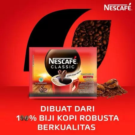 Nescafe Classic 2gr Sachet (10) adalah kopi hitam instant yang terbuat dari 100% biji robusta Lampung pilihan. Mulailah hari anda dengan aroma kopi hitam NESCAFE Classic yang mantap. Menajamkan semua inderamu, membuka mata dan pikiranmu untuk menjalani hari sepenuhnya.
