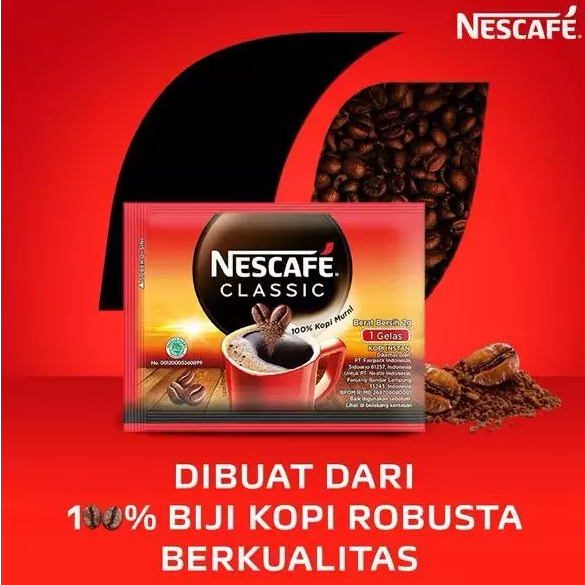 Nescafe Classic 2gr Sachet (10) adalah kopi hitam instant yang terbuat dari 100% biji robusta Lampung pilihan. Mulailah hari anda dengan aroma kopi hitam NESCAFE Classic yang mantap. Menajamkan semua inderamu, membuka mata dan pikiranmu untuk menjalani hari sepenuhnya.