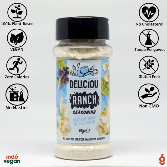 Ranch Seasoning dari Deliciou akan membuat indera perasamu bangkit dan membuatmu terus menginginkannya! Dibuat dari permintaan kamu pecinta Deliciou, rasa favorit kamu kita buat dalam bentuk bumbu tabur! Tidak ada lagi popcorn, keripik, snack ataupun sandwich yang lembek. Kesempurnaan rasa creamy, asam, asin dan manis yang enak di dalam botol! Kemasan bumbu yang praktis ini memiliki rasa yang sempurna untuk ditambahkan ke semua snack, dips, salad, sandwich, kentang favorit kamu!