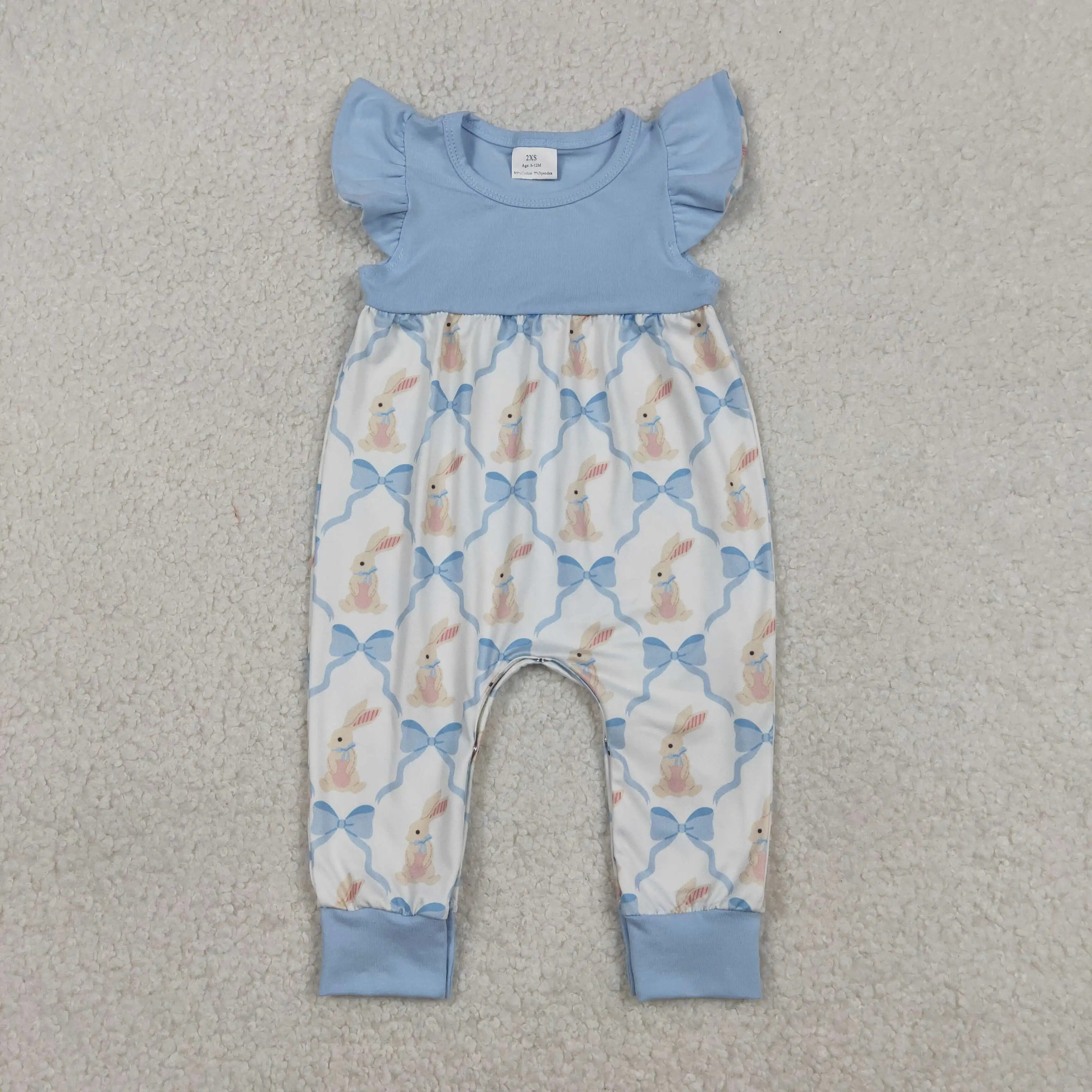 NEW Festival Baby Girls Flutter Sleeve Bows Rabbits Checked Easter Rompers