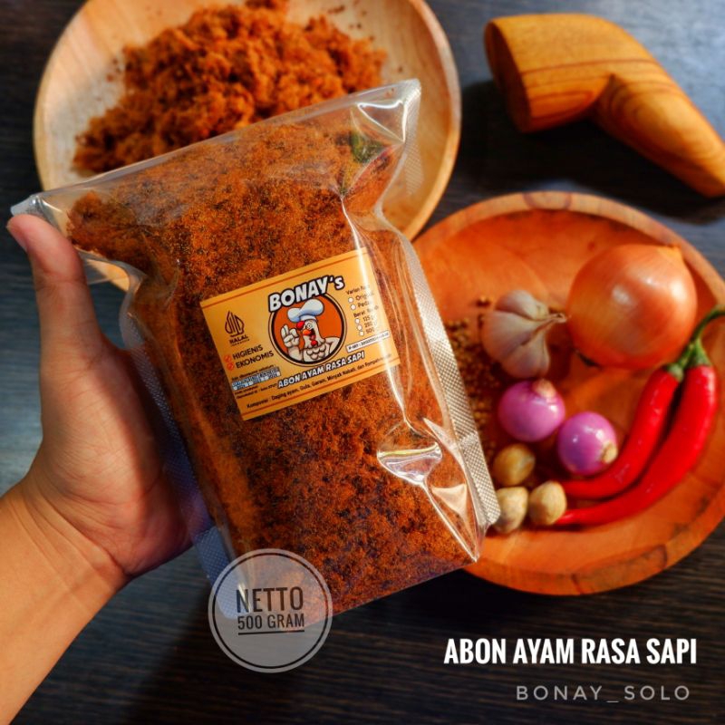 NEW PRODUCT BONAY'S 500GRAM ABON AYAM RASA ABON SAPI KEMASAN PLASTIK POUCH HALAL ABON PREMIUM SOLO