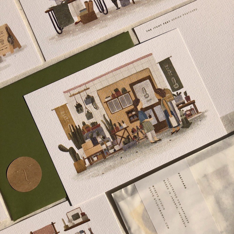 Itchy Feet Series Poscard by Oseye Studio.