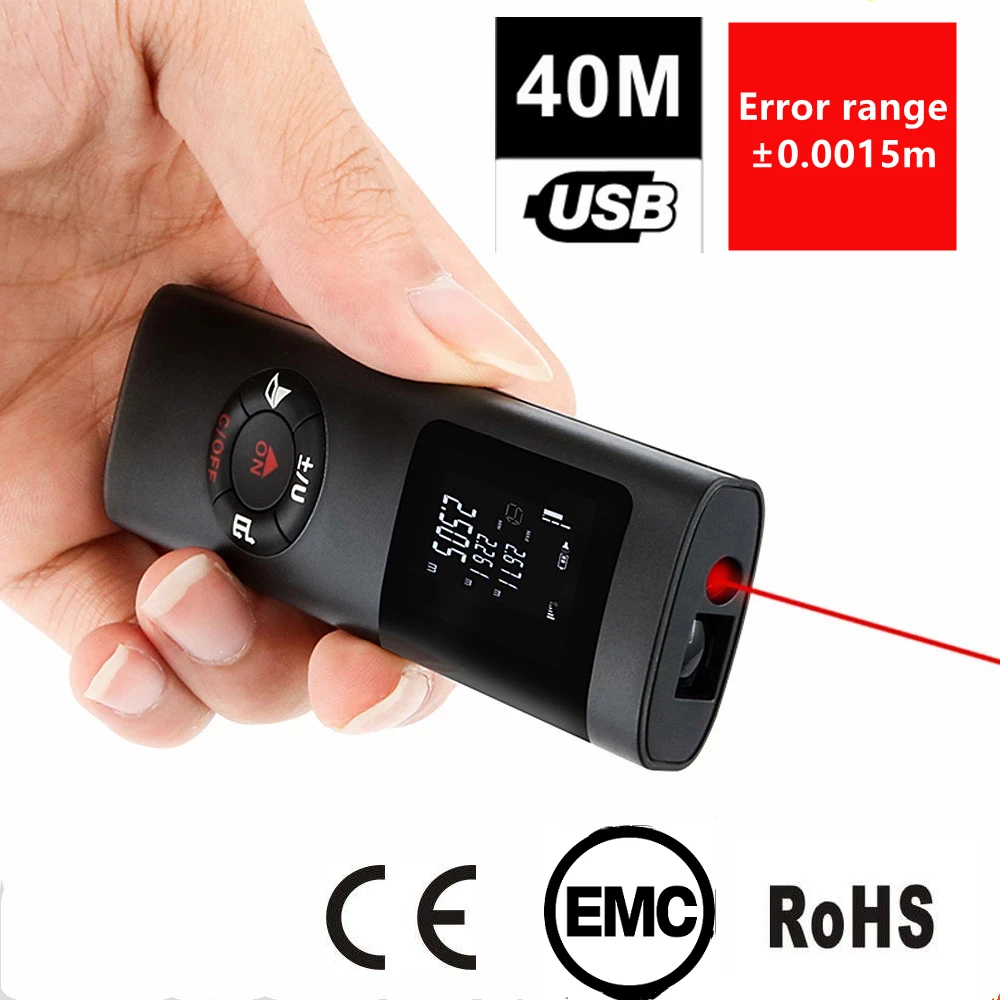 NEW2022 KKMOON Handheld Multifunctional 40M LCD Digital Laser Rangefinder Mini USB Charging Laser Distance Meter for Interior