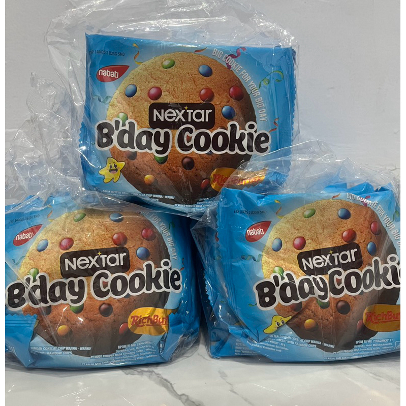 Nextar b’day cookie biskuit rasa butter dengan cokelat chip warna warni