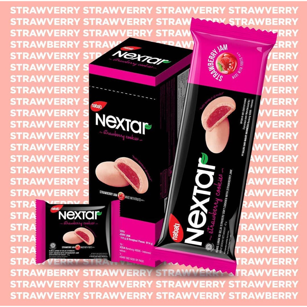 Nextar Cookies Strawberry makanan yang dibuat dengan bahan-bahan pilihan berkualitas sehingga menimbulkan rasa yang lezat, cocok untuk dinikmati pada saat santai bersama keluarga. BPOM MD 836210180042,Shelf Life: 12