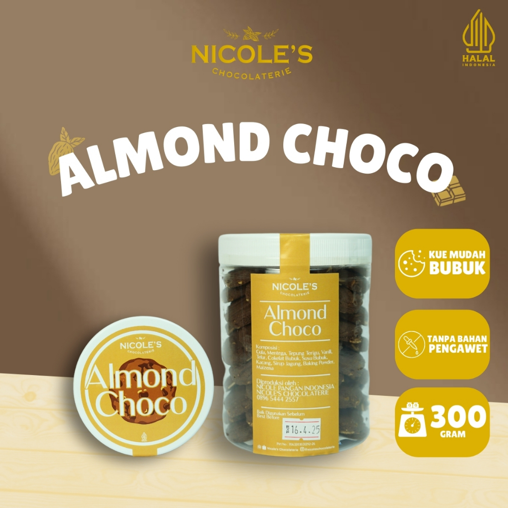 Rasakan perpaduan sempurna antara cookies cokelat yang lembut dan kacang almond panggang yang gurih dalam setiap gigitan.