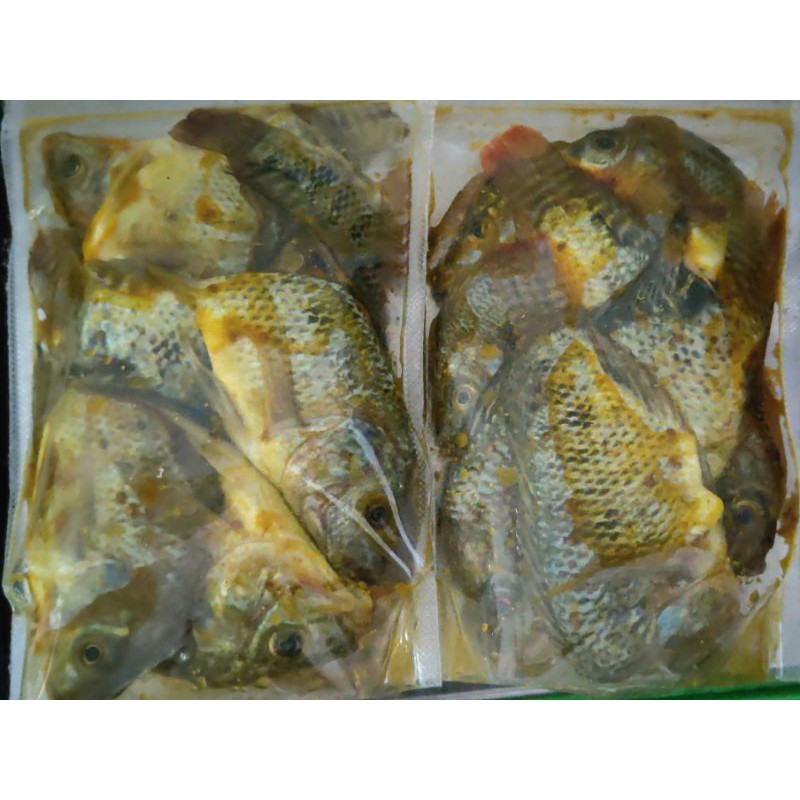 Produk olahan ikan nila bumbu kuning siap goreng. ukuran ikan beragam 3/4 jari