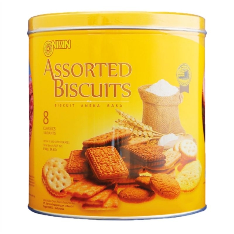 NISSIN Assorted Biscuits Kaleng 650 g adalah sebuah paket biskuit berbagai jenis dan varian persembahan nissin. Dibuat menggunakan bahan-bahan pilihan, sehingga menghasilkan biskuit dengan kualitas tinggi. Diproses dan diolah menggunakan teknologi modern dan proses yang higienis, menjadikan seluruh varian biskuit produksi NISSIN memiliki rasa yang lezat. Dalam satu kemasan terdapat delapan jenis varian biskuit seperti biskuit sandwich, biskuit cokelat, biskuit malkist, dan varian lainnya. Dikemas menggunakan tabung kaleng dengan ukuran 650 gram berwarna kuning untuk menjaga kualitas dan rasa biskuit. Cocok dijadikan buah tanggan saat pulang ke kampung halaman atau dijadikan stock cemilan dirumah untuk menyambut tamu. Segera beli NISSIN Assorted Biscuits 650 g sebagai kue kering untuk keluarga anda.