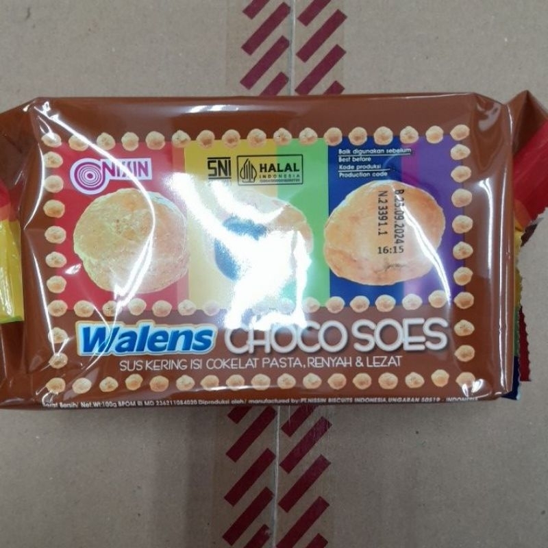 NISSIN Walens Choco Soes 100 g adalah cemilan berbentuk kue soes kering. Dibuat menggunakan bahan-bahan pilihan, sehingga menghasilkan cemilan berkualitas. Diolah menggunakan proses yang modern dan higienis, menjadikan snack memiliki rasa yang lezat.