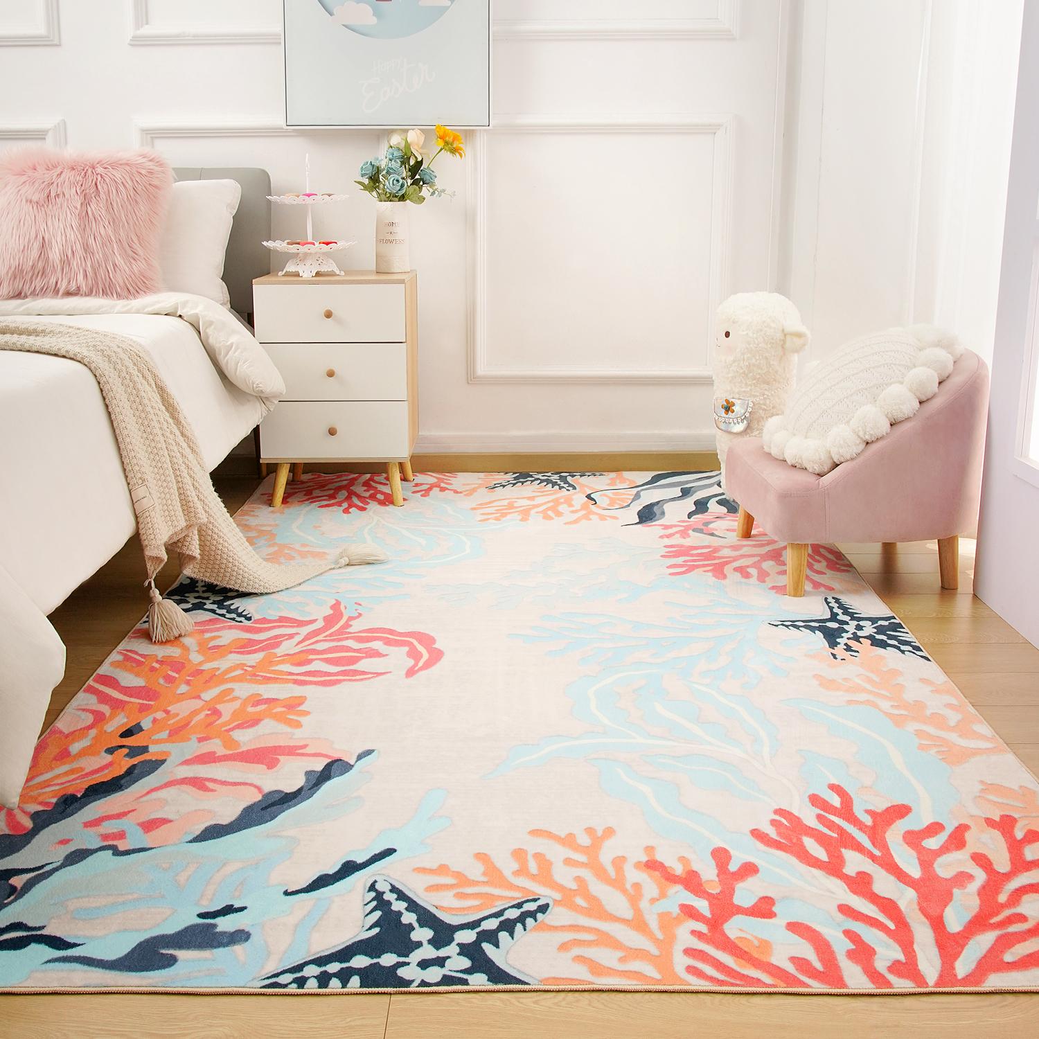NOAHAS Винтажный цветочный ковер для гостиной спальни, мягкий моющийся коврик с нескользящим покрытием, ковер с низким ворсом, устойчивый к пятнам 122x183cm бежевый