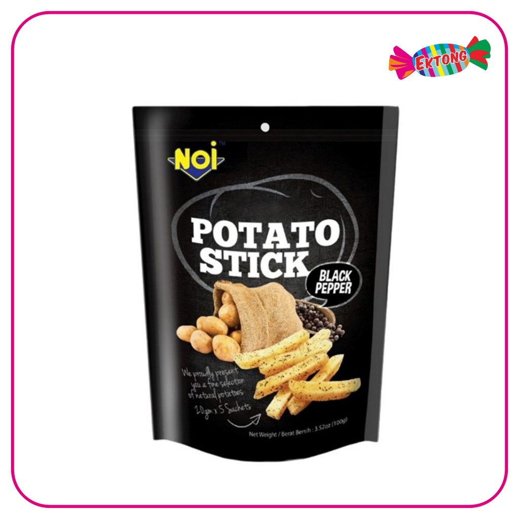 Dibuat dari kentang asli dengan kualitas tinggi, noi potato stick black paper hadir untuk menemani anda. Perpaduan tekstur renyah dan rasa asin gurih serta aroma lada hitam yang memikat akan membuat waktu ngemil anda semakin lengkap