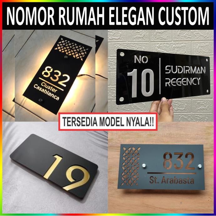 1. Negatif 2 Layer Mirror = nomor rumah 2 lapis, lapis 1 background, lapis 2 isian bermodel negatif (lubang). Menggunakan warna mirror (Gold, Silver, Rose Gold) di background atau motif