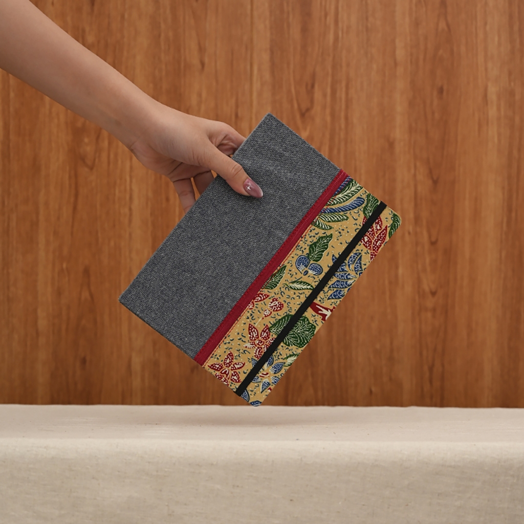 Notebook dengan cover terbuat dari material perca batik yang berbahan dasar katun mori.