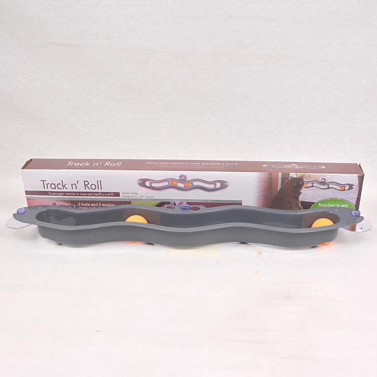 Features:The product can be attached to a wall or window to save space.Through the eye-catching sports ball, the cat can slide over the large opening on the track.Cats can increase agility by playing games, and focusing on playing games can reduce cat damage to furniture.Can promote the relationship between pets and owners. The product is easy to assemble. Size : 55cm Color : Dark Grey