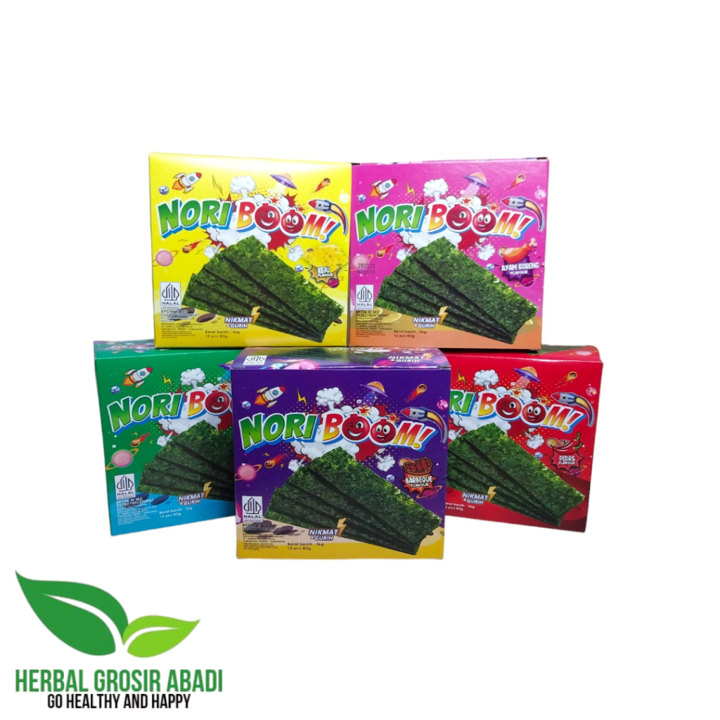 NORI BOOM! Cemilan Rumput Laut Panggang 5 Rasa I Snack NORIBOOM Rumput Laut Per Box isi 12 Pcs