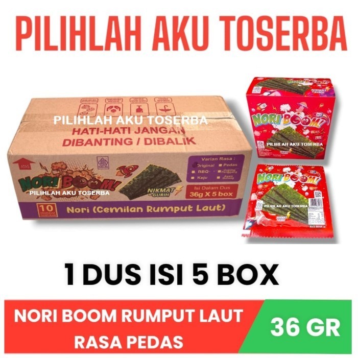 NORI BOOM Rumput Laut Rasa SPICY PEDAS - ( HARGA 1 DUS isi 5 box )