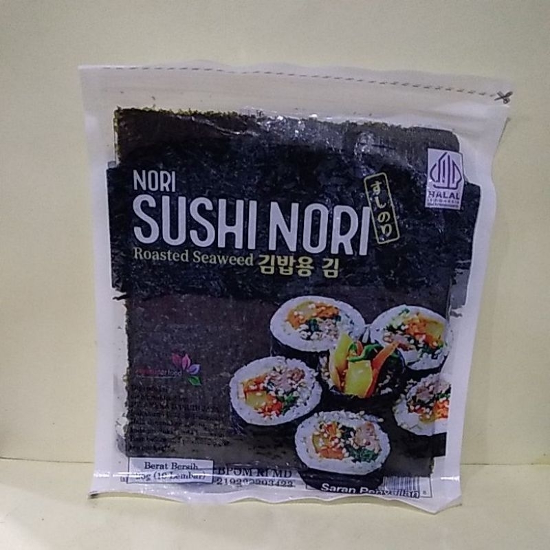 Sushi Nori / Sushi Seaweed / Rumput Laut Nori Sushi Nori adalah Lembaran nori 100% rumput laut yang siap makan (tanpa bumbu)