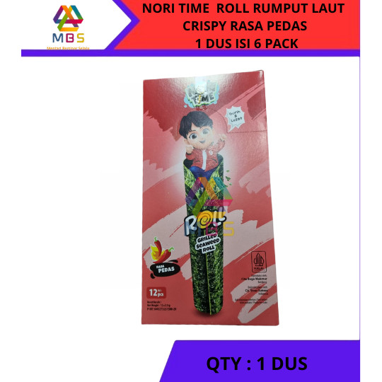 NORI TIME ROLL SEAWEED RASA PEDAS SNACK CEMILAN MAKANAN RINGAN RUMPUT LAUT HARGA PER BOX DUS