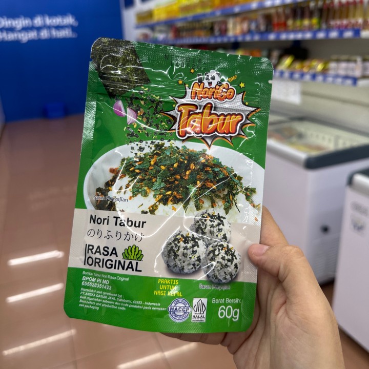 Norigo Nori Tabur Rasa Original adalah taburan rumput laut kering dengan cita rasa gurih khas yang bikin setiap suapan makin nikmat. Cocok untuk nasi putih, bento, onigiri, mie instan, sup, atau bahkan jadi topping snack.