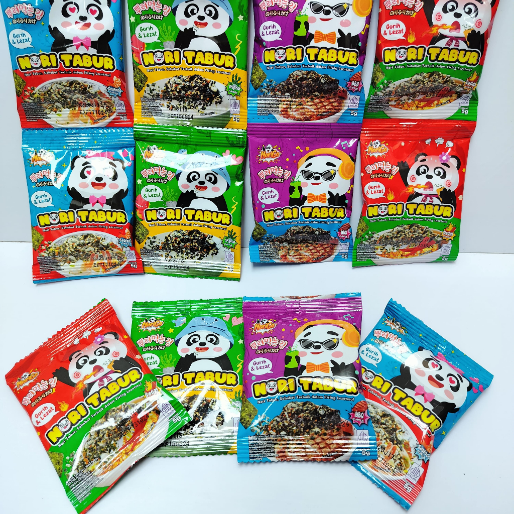NoriGo menghadirkan Nori Tabur dengan potongan rumput laut panggang, dengan taburan rice noodle, biji wijen, bawang merah dan minyak wijen yang digunakan sebagai taburan toping pelengkap nikmat makanan lezatmu.