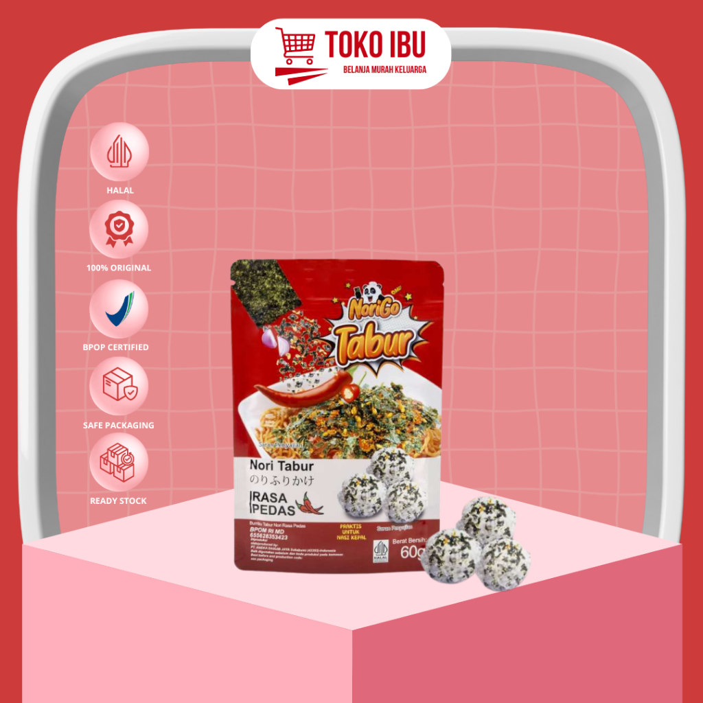 Norigo Tabur Pedas 60gr adalah produk taburan rumput laut (nori) panggang yang dipadukan dengan bawang goreng dan wijen, serta memiliki rasa pedas. Produk ini cocok untuk ditaburkan pada berbagai hidangan seperti nasi, mie, bubur, dan lainnya untuk menambah cita rasa pedas dan gurih.