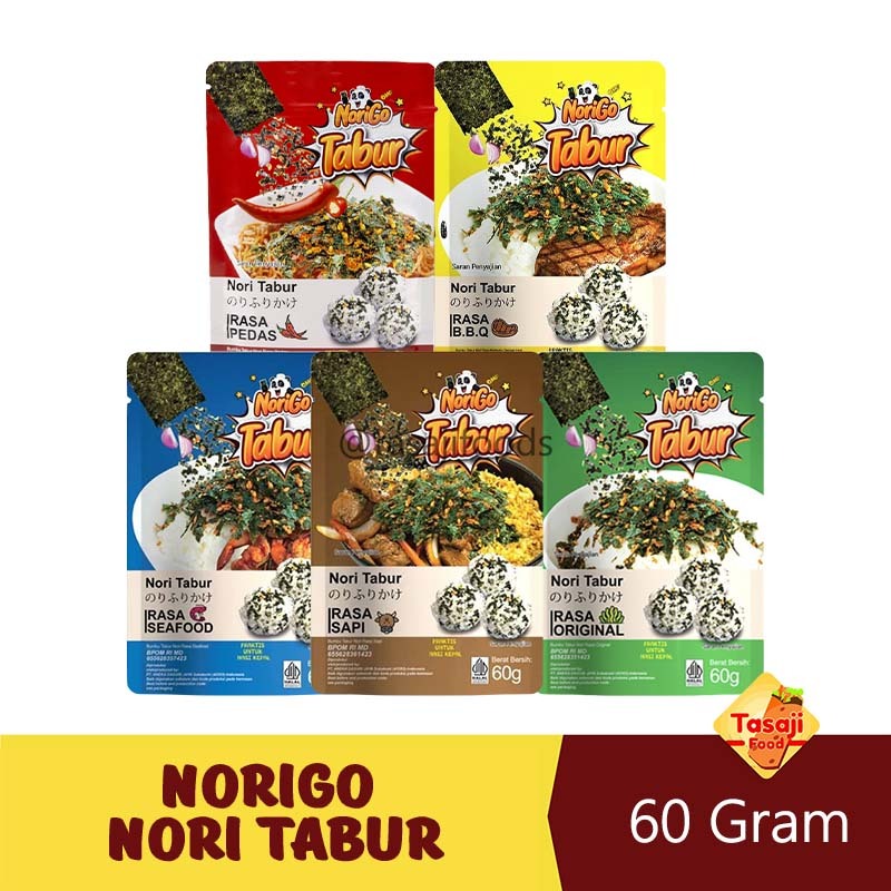 NORIGO Nori Tabur Rasa Sapi, Pedas, Original, BBQ, Seafood, Rumput Laut Panggang 60 gr