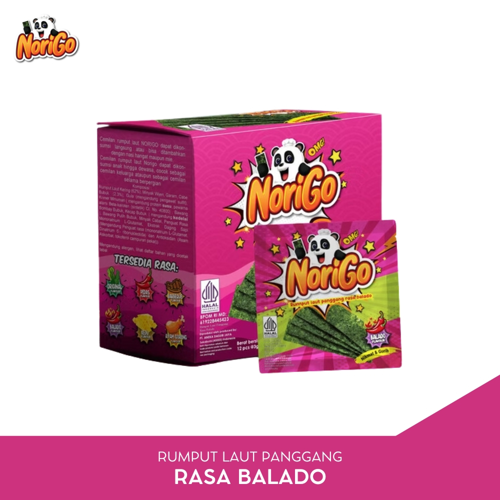 NORIGO - Rumput Laut Panggang Rasa Balado - 1 Box Isi 12 Sachet