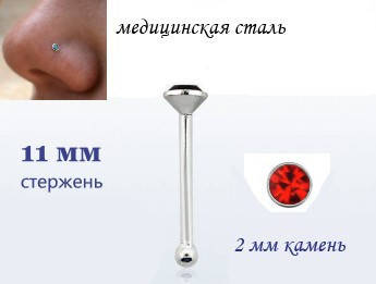NOSE STUD СЕРЬГА В НОС МЕД СТАЛЬ с красным кристаллом 2х11мм