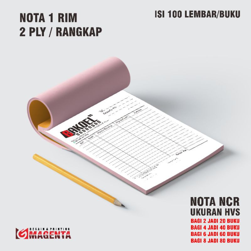 PILIHAN UKURAN UKURAN NOTA & JUMLAH DALAM BUKU :